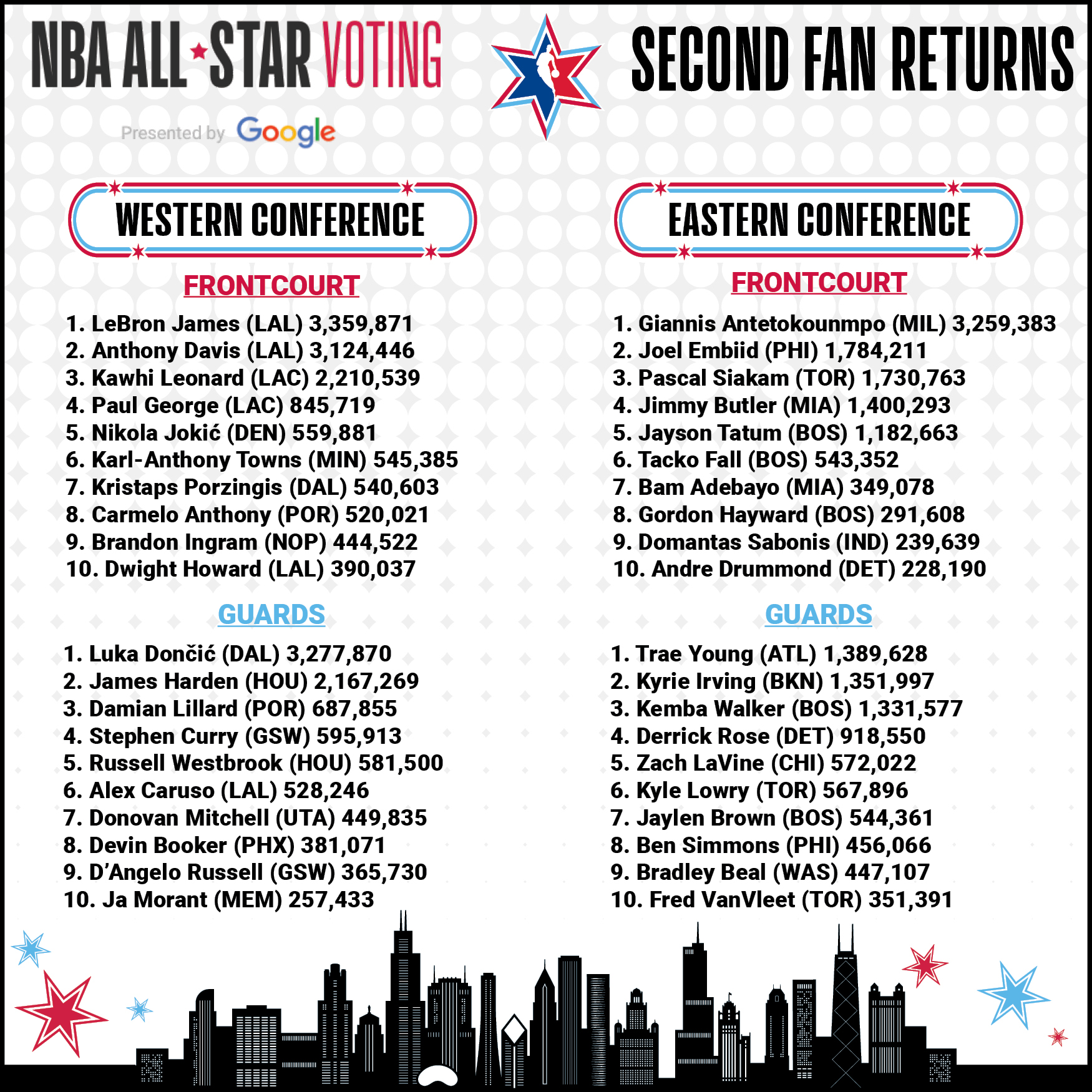 Lakers’ James Takes Overall Lead in Second Fan Returns of National Basketball Association (NBA) All-Star Voting Presented by Google