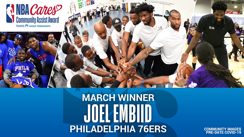 Philadelphia’s Joel Embiid receives march NBA Cares Community Assist Award presented by Kaiser Permanente