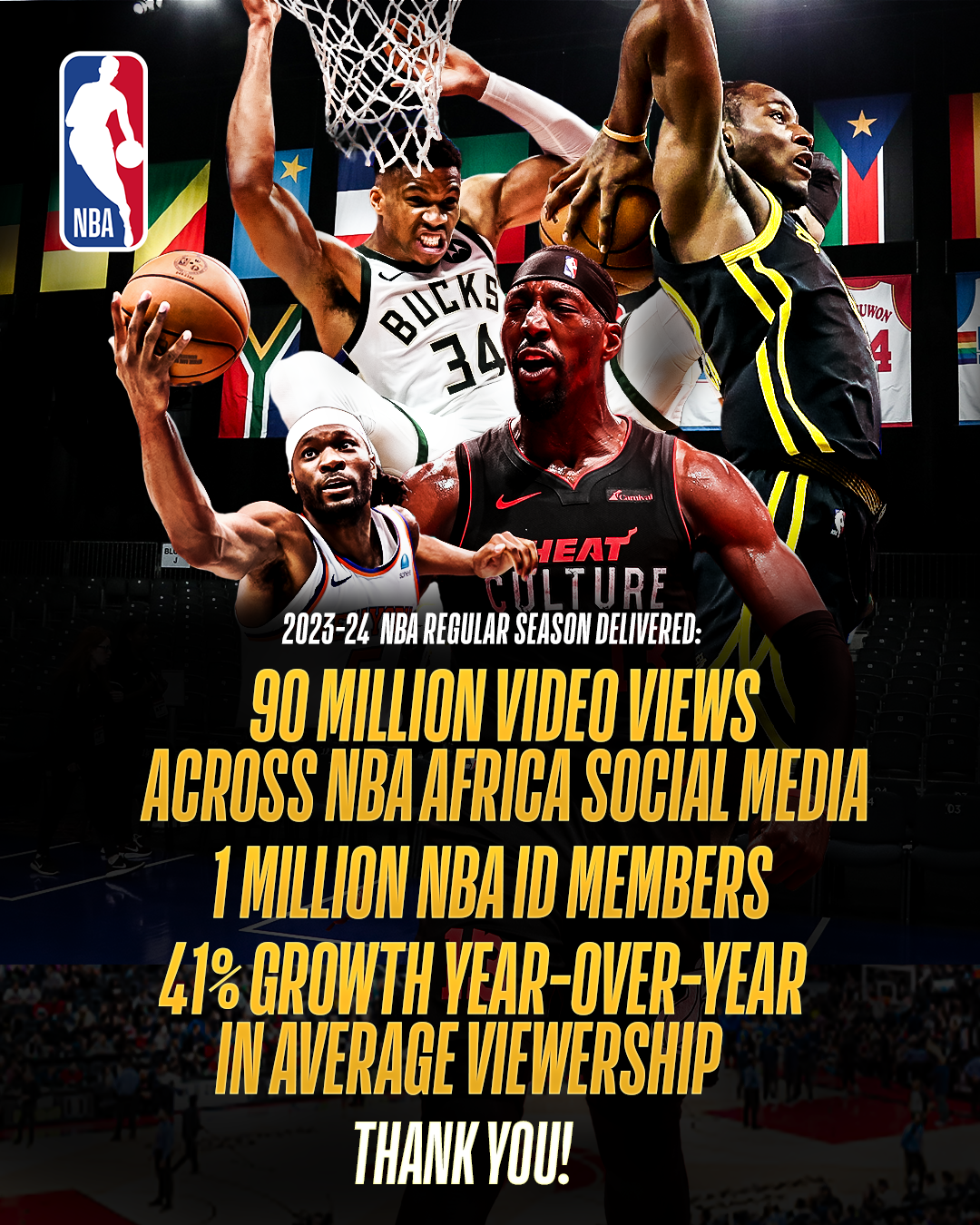 NBA Africa (www.NBA.com) today announced that the 2023-24 regular season delivered increased television viewership in Africa as well as increased engagement across the league’s localized social media accounts on the continent. Highlights include:
