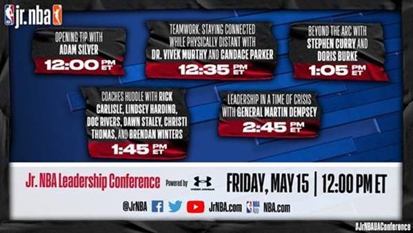 The free, virtual conference will be livestreamed on the NBA App, NBA.com and Jr. NBA.com and across the NBA and Jr. NBA’s Facebook, Twitter and YouTube accounts